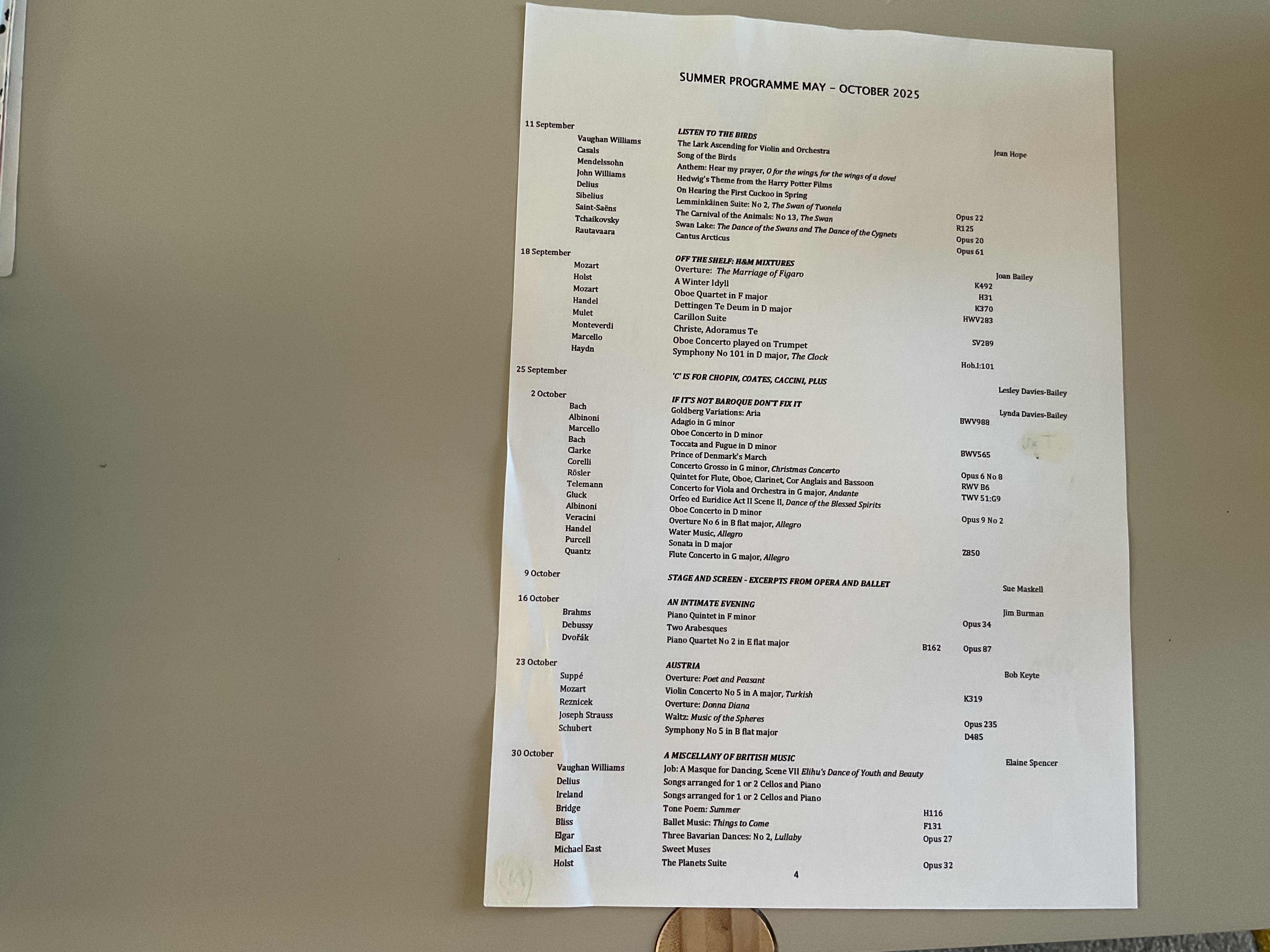 | 25 September | Lesley Davies-Bailey | 'C' is for Chopin, Coates, Caccini, Plus |